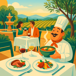 * Peter can now enjoy the dinner with his friends at Auberge du Soleil St. Helena!