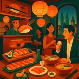 * Peter can now enjoy the dinner with his friends at Azuki München!