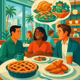 * Peter can now enjoy the dinner with his friends at Birdie G's Santa Monica!