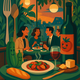 * Peter can now enjoy the dinner with his friends at Bistrot Chez Rémy Chessy!