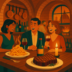 * Peter can now enjoy the dinner with his friends at Buca Lapi Firenze!