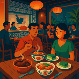 Let's say Peter has a great morning and decides to take his three friends to Candlenut Singapore at 6 PM the same day.
