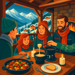 * Peter can now enjoy the dinner with his friends at Cervosa Alm Serfaus!