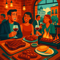 * Peter can now enjoy the dinner with his friends at Charrúa Madrid!