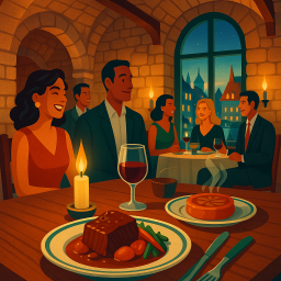 * Peter can now enjoy the dinner with his friends at Chez Muffy Québec!
