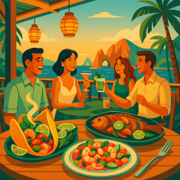 Let's say Peter has a great morning and decides to take his three friends to Cocina Del Mar Cabo San Lucas at 6 PM the same day.