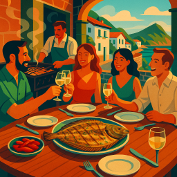 * Peter can now enjoy the dinner with his friends at Elkano Txiki Getaria!
