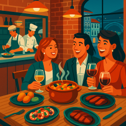 * Peter can now enjoy the dinner with his friends at Euskalduna Studio Porto!