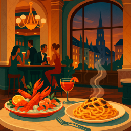 * Peter can now enjoy the dinner with his friends at Fabios Wien!