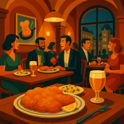 * Peter can now enjoy the dinner with his friends at Figlmüller at Wollzeile Wien!