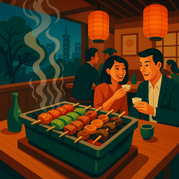 Let's say Peter has a great morning and decides to take his three friends to fumée Yakitori at 6 PM the same day.