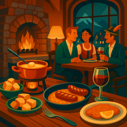 * Peter can now enjoy the dinner with his friends at Gasthof Löwen Bad Ragaz!