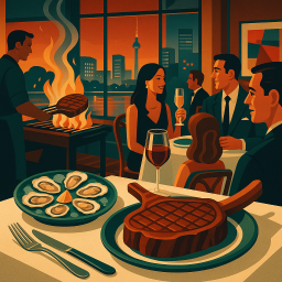 * Peter can now enjoy the dinner with his friends at Grill Royal Berlin!