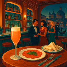 * Peter can now enjoy the dinner with his friends at Harry's Bar Venezia!