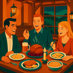 * Peter can now enjoy the dinner with his friends at Hotel Restaurant Lamm Hebsack Remshalden!