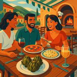 Let's say Peter has a great morning and decides to take his three friends to Il Carciofo (Bar Pizzeria Trattoria) Cerda at 6 PM the same day.
