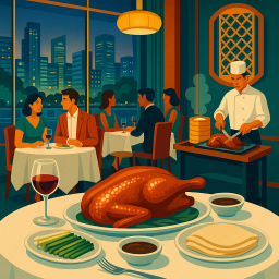 Let's say Peter has a great morning and decides to take his three friends to Imperial Treasure Super Peking Duck Singapore at 6 PM the same day.