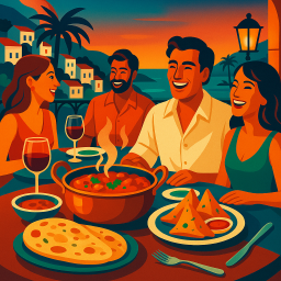 Let's say Peter has a great morning and decides to take his three friends to Indian Restaurant Balti Tower II Mojacar Pueblo at 6 PM the same day.