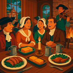 * Peter can now enjoy the dinner with his friends at King's Arms Tavern Williamsburg!