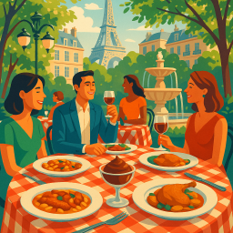 * Peter can now enjoy the dinner with his friends at La Fontaine de Mars Paris!