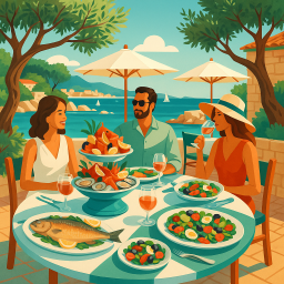 Let's say Peter has a great morning and decides to take his three friends to La Guérite Cannes at 6 PM the same day.