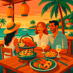 * Peter can now enjoy the dinner with his friends at La Petite Plage Saint-Barthélemy Gustavia!