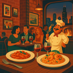 Let's say Peter has a great morning and decides to take his three friends to La Scarola Chicago at 6 PM the same day.