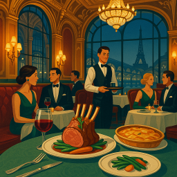 * Peter can now enjoy the dinner with his friends at Le Train Bleu Paris!