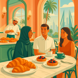 * FluffyStar64 now uses their connections at Lilou Artisan Patisserie Manama to secure the table.