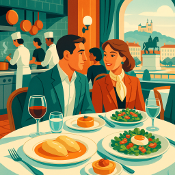 * Peter can now enjoy the dinner with his friends at L'Institut Restaurant Lyon!