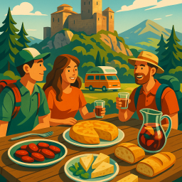 * Peter can now enjoy the dinner with his friends at loarre camping castle!