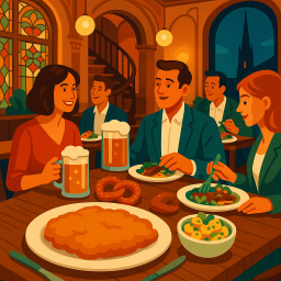 * Peter can now enjoy the dinner with his friends at Lugeck Wien!