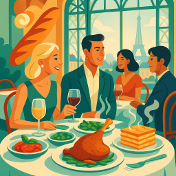 * Peter can now enjoy the dinner with his friends at Madame Brasserie - Tour Eiffel Paris!