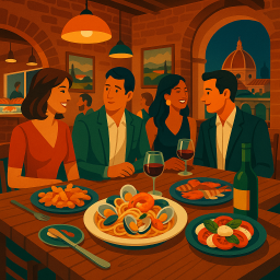 * Peter can now enjoy the dinner with his friends at Marina Di Santospirito Firenze!