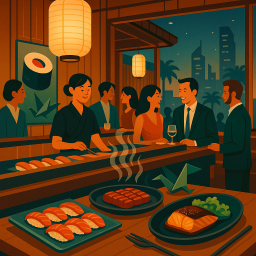 * Peter can now enjoy the dinner with his friends at MYAZU Riyadh!