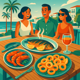 Let's say Peter has a great morning and decides to take his three friends to Ocean Basket Larnaca at 6 PM the same day.