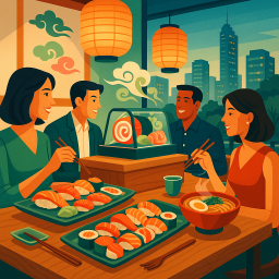 Let's say Peter has a great morning and decides to take his three friends to OKASAN BANGKOK Pathum Wan at 6 PM the same day.