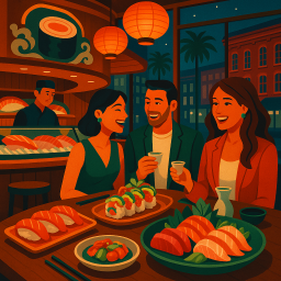Let's say Peter has a great morning and decides to take his three friends to O-Ku Charleston at 6 PM the same day.