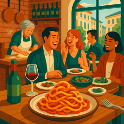 * Peter can now enjoy the dinner with his friends at Osteria da Fortunata - Moscova Milano!