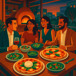 Let's say Peter has a great morning and decides to take his three friends to Pizza 4P's Indiranagar Bengaluru at 6 PM the same day.