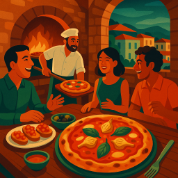 * Peter can now enjoy the dinner with his friends at Pizzeria Cerere Cagliari!