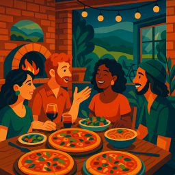 * Peter can now enjoy the dinner with his friends at Pizzeria Mercato Carrboro!