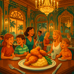 * Peter can now enjoy the dinner with his friends at Plaza Inn Anaheim!