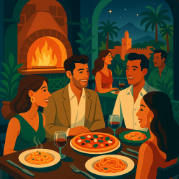 Let's say Peter has a great morning and decides to take his three friends to Portofino Restaurant Marrakech at 6 PM the same day.