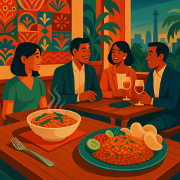 * Peter can now enjoy the dinner with his friends at Raos Restaurant!