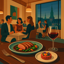 * Peter can now enjoy the dinner with his friends at Restaurant Alouette København!