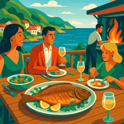 * Peter can now enjoy the dinner with his friends at Restaurant Elkano Getaria!