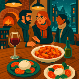 * Peter can now enjoy the dinner with his friends at Restaurant Moccione Montréal!