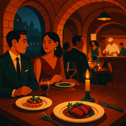 * Peter can now enjoy the dinner with his friends at Restaurant Tanière³ Québec!
