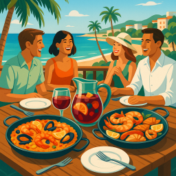 Let's say Peter has a great morning and decides to take his three friends to Restaurante El Mundo Magaluf at 6 PM the same day.